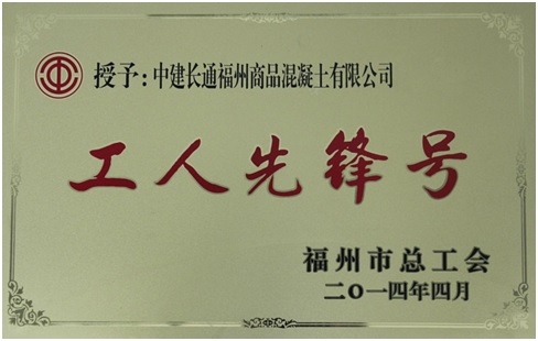 (通讯员 何华恩))7月31日,中建商砼福建筹备组长通站喜获福州市“工人先锋号”荣誉奖牌,长通站是福州混凝土行业唯一获此殊荣企业。