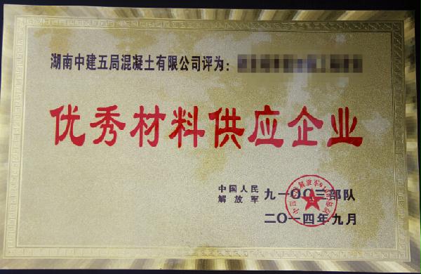 (通讯员 徐萝成 杨乂天)11月29号,伴随着嘹亮的《人民海军向前进》歌声,解放军某国防工程优秀企业表彰大会在三亚举行。会上,五局商砼喜获“优秀材料供应企业”荣誉称号并接受海军部队颁奖,成为了获奖的6家企业中唯一一家商品混凝土生产企业。