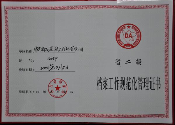 (通讯员 叶圣伟 陈献)12月5日,中建商砼成都分公司档案管理工作成功通过四川省档案局专家认定组的考核评定,获评“四川省档案工作规范化管理二级单位”。