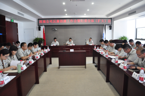 (通讯员 田双倩)5月8日下午,西南公司召开了2015年反腐倡廉建设工作会暨纪委全体(扩大)会,公司领导班子成员、机关各部门负责人、司属单位党政负责人、专兼职纪检监察工作人员共计51人参加了本次会议。 会上,西南公司纪检监察审计部副经理(主持工作)陈艳琼传达了股份公司2015年反腐倡廉建设工作会会议精神,西南公司党委副书记、纪委书记、工会主席刘军作了题为《强化纪律约束、聚焦监督问责,扎实推进党风廉政建设和反腐败斗争工作》的工作报告,报告肯定了2014年工作成绩,部署了2015年重点工作。 报告中指出,2014年,西南公司在股份公司的正确指导下,紧紧围绕企业发展中心任务,以群众路线实践活动为抓手,统抓统管多头并进,充分发挥了反腐倡廉工作整体合力,深入推进了反腐机构的职能保障。对于2015年工作,刘书记在报告中确定了工作总体思路:要以制度体系建设为基础,以党风廉政教育为载体,以监督查处问责为重点,以群众路线实践为抓手,坚定不移推进反腐工作,要重点落实五项工作:一是强化源头治理,确保“两责任”要求落地;二是强化监督审计,确保制度规定贯彻落实;三是强化监督问责,确保党风党纪的刚性约束;四是强化廉政教育建设,筑牢拒腐防变底线;五是强化队伍建设,确保纪检监察工作高效开展。 股份公司副总经理,西南公司党委书记、董事长向卫平作了题为《守规执纪严问责、务实求是敢担当,坚定不移开展党风廉政建设和反腐败工作》的重要讲话,向总在讲话中强调,要认清当前形势,剖析企业现存问题,切实开展廉政教育,统一思想基础;要建设纪律防线,持续落实中央八项规定,健全纪律检查机制,强化责任担当,不断夯实组织保障;要加强防控监管,落实党内监督、群众监督、内部巡视各项要求,落实监督责任;要聚焦执纪问责,以“145”集中腐败为审查重点,加大惩戒力度,全面推动反腐倡廉工作实效开展。 会上,西南公司纪检监察审计部对“一岗双责”责任状和保密协议进行了详细解读,党委书记与各领导班子、各领导班子与其分管部门负责人签订了“一岗双责”责任状和保密协议,责任人做出“严守党规党纪,严守企业秘密”的庄重承诺。