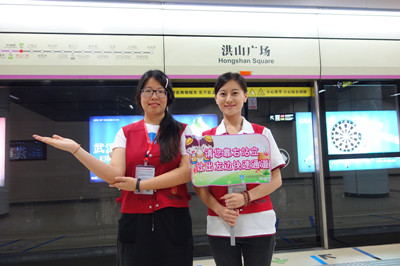 (通讯员 罗宇萍)“请大家在车门两侧标示处排队候车”、“请大家先下后上,不要拥挤”……一声声温馨的叮嘱,一张张热情的笑脸让空气中氤氲着青春的气息,一个个悦动的红色身影给灰色飞驰的动车增添了一抹亮色,8月19日,来自中建西部建设子企业中建商砼的一支特殊队伍——地铁乘客文明志愿者服务队出现在武汉地铁人流量较大的洪山广场站及循礼门站,引导晚班高峰期乘客文明有序乘车。