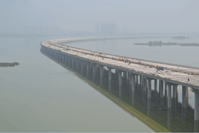 (通讯员 阮国军 肖凡)8月21日,武汉西四环线后官湖特大桥桥面铺装全部完成。