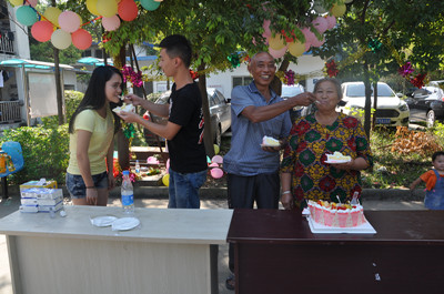 本次活动参加人员年龄最大相差五十三多岁。已过金婚的彭爷爷、李奶奶给我们讲述了他们50多年来的爱情故事拉开了活动序幕。三代不同年龄阶段的夫妇和青年男女职工在主持人的带动下大胆尝试,智通关卡,开展了别开生面的七夕大闯关活动,场面和谐而温馨。中建西部建设西南公司龙潭站联合支部们为了给金婚老人们一个惊喜,特意订做了一个七夕蛋糕。看着老人们切蛋糕、品尝蛋糕的温馨场面,现场的工作人员们感到的是深深的幸福。张大爷激动地双手颤颤巍巍地握住老伴的手,热泪盈眶地说:“儿女不在身边,家里就我们老两口。很开心今天过了个热闹的情人节。”