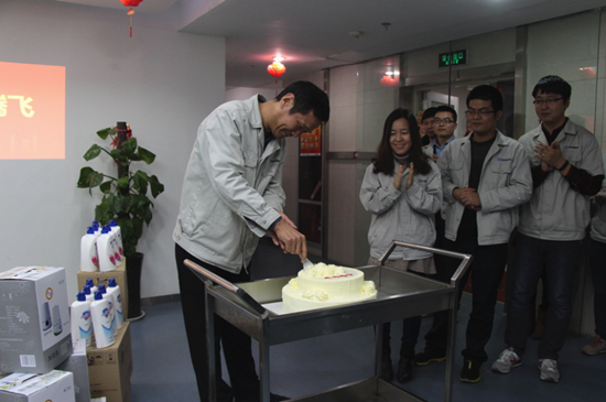 北方公司全体员工的积极参与,纷纷从各地送来祝福视频及贺词,以此表达员工们对公司的诚挚热爱和对公司未来的美好祝愿。活动中,办公室主任宣读了各区域送来的贺词精选,并播放祝福视频;之后由股份公司副总经理、北方公司董事长、党委书记曾昭德和北方公司助理总经理、市场营销部经理刘聪抽取十份幸运奖。最后,曾董切开寓意“北方腾飞”的蛋糕,并为北方公司机关和管控小组员工发放2015年生日礼物。