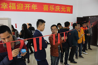 西南公司、北方公司、贵州公司分别举办“猜灯谜、包元宵”庆祝活动,员工聚集在活动室内,争先恐后的取下挂在活动室四周的灯谜,字句斟酌,仔细研究。西南公司还进行了“趣味做汤圆”比赛,氛围十分温馨和热烈。活动结束后各公司还为所有员工准备了香甜可口的汤圆,为远在他乡、无法回家与亲人团聚的的同事们,送去了温暖的节日祝福!