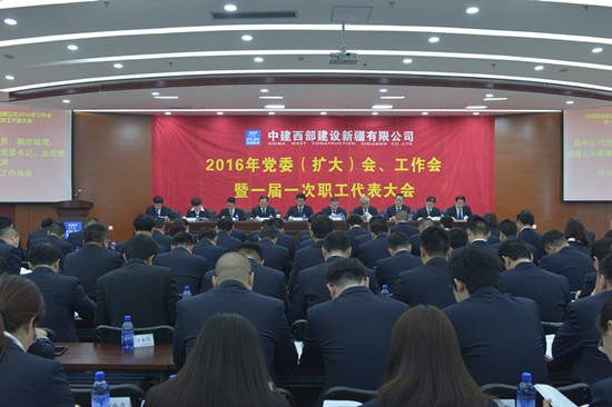 在2016年党委扩大会上,股份公司党委委员、副总经理,新疆公司董事长、党委书记、总经理刘洪传达了中建总公司2016年工作会、股份公司“三会”精神;股份公司纪委副书记、新疆公司党委副书记、工会主席金自强作了《2016年党委工作报告》;在股份公司人力资源部郑涛总经理的统一安排下,现场还开展了新疆公司领导班子综合考核评价和股份公司干部管理制度宣贯工作。党委工作报告中指出,以“聚焦市场谋发展,提升管理增效益”为年度党群中心工作,从加强思想引领、系统建设、干部管理、文化宣传、打造品牌、落实“两个”责任和促进和谐发展等七个方面推进工作有效开展,为公司全面完成2016年各项目标任务做出新的贡献。