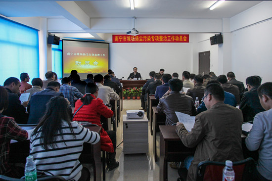 (通讯员 黄利丽)3月14日,南宁市环保局、工信委、商务局、交通局主要负责人,南宁市8个区代表,各区环保局局长代表及相关企业负责人共50人前往中建西部建设西南有限公司(简称西南公司)南宁筹备组屹桂站开展扬尘治理专项调研,并召开了“南宁市堆场扬尘污染专项整治工作动员会”。