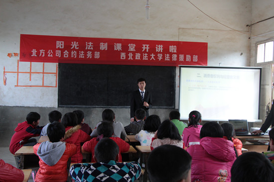 (通讯员 刘伟) 近日,以“3·15”国际消费者权益日普法宣传为契机,中建西部建设北方有限公司(简称北方公司)合约法务部联合西北政法大学法律服务中心志愿者们一行来到周至县虎峰小学,开展“阳光法制课堂”支教活动。