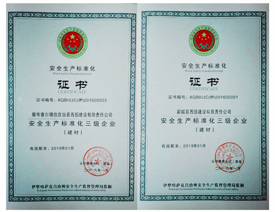 (通讯员 张洁)3月25日,中建西部建设新疆有限公司(简称新疆公司)所属伊犁公司察县子公司、霍城子公司顺利通过考评,获得由伊犁哈萨克自治州安全生产监督管理局颁发的“安全生产标准化三级企业”证书,标志着伊犁公司安全生产标准化建设有了阶段性成果。