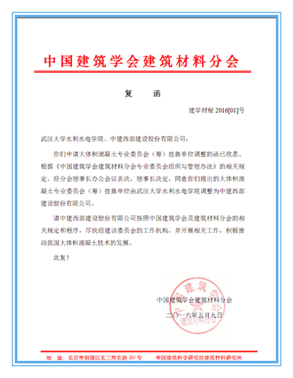 中国建筑学会是全国建筑科学技术工作者组成的学术性团体,主管单位为中国科学技术协会、住房和城乡建设部。该学会下设22个直属分会,建筑材料分会为其中之一,建筑材料分会下设13个专业委员会,包括股份公司正在筹备中的大体积混凝土应用技术专业委员会(以下简称为大体积混凝土专委会)。成立该专委会的目的是为了保障和提高大体积混凝土的工程质量,更有效地指导裂缝控制,深入探讨裂缝产生的机理,从材料、结构、施工、裂缝修补等方面对大体积混凝土工程建设给予指导。