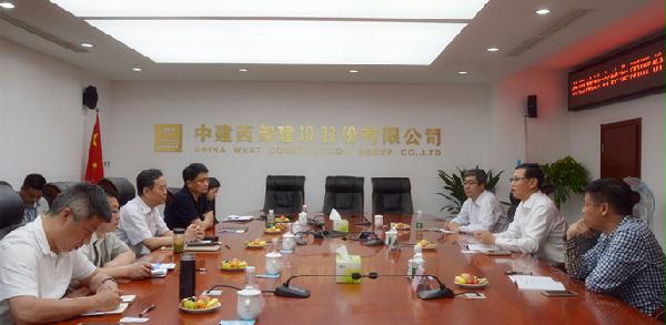 吴文贵董事长首先对青建集团的到访表示热烈欢迎,并向客人介绍了中建西部建设的基本概况。吴董表示,中建西部建设充分认同青建集团的企业文化及发展特色,非常赞赏其在山东及其他地区城市建设中所做出的巨大贡献。丁洪斌董事长表示,青建集团也高度认可中建西部建设在我国商品混凝土领域的技术及管理优势,希望双方能够有机会达成合作。
