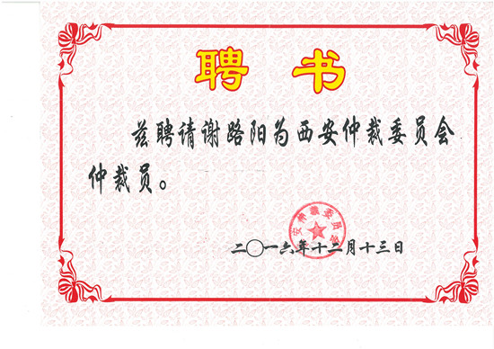 12月13日,西安仲裁委员会副主任兼秘书长潘俊星向中建西部建设合约法务部总经理谢路阳颁发了仲裁员聘书,聘任谢路阳同志为西安仲裁委员会仲裁员。此前,谢路阳同志还被“一带一路”(中国)仲裁院聘为专家咨询委员会委员、仲裁员,被武汉仲裁委员会、贵阳仲裁委员会聘任为仲裁员。 谢路阳同志被聘为西安仲裁委员会仲裁员,将有助于进一步加强中建西部建设与政府及优秀企、事业单位的交流与合作,公正、高效地维护企业合法权益。(通讯员 胡志磊)