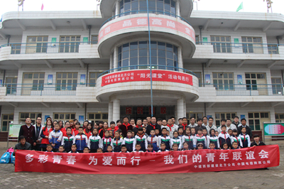 (通讯员 李纲 张施怡 孙雪)11月10日,在共青团陕西省委的指导下,中建西部建设所属北方公司(以下简称北方公司)、中国电信陕西公司联合共青团旬邑县委、旬邑县教育局共同举办的“多彩青春·为爱而行”阳光课堂公益助学活动。来自北方公司、中国电信陕西公司的共50多位志愿者参加了此次公益活动。活动现场,两家单位分别向同学们送上书包、文具、字典等学习用品。