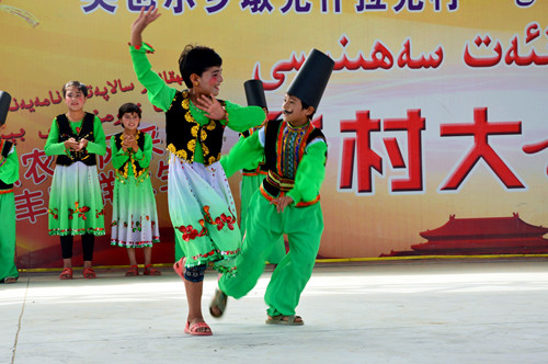 (通讯员 阿不来提)7月11日,喀什地区英吉沙县英也尔乡中心小学师生在九村文化广场精心准备了一台文艺节目,感谢两年来默默支持英也尔乡教育事业的中建西部建设驻村工作组。