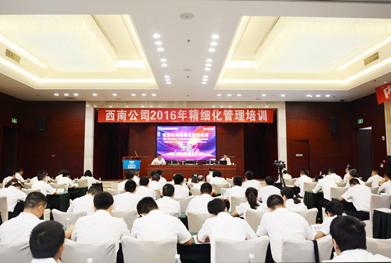 西南公司总经理黄钰锋同志以“管理的八大原则是什么?丰田的七大浪费是什么?”等5个问题开篇,对精细化管理理论、西南公司精细化管理实施方案进行了详细解读。随后,西南公司各筹备组组长及成都各片区负责人围绕精细化管理“六大主线”开展主题培训,四川大学教授、公司智能化建设项目负责人吉旭教授围绕信息化和智能化建设,讲解提升精细化管理水平以及产生的经济价值,并分享同行业企业的经验和先进做法。整个培训时间紧凑,内容充实,培训与交流贯穿,理论与案例结合,达到了培训预期的目标。