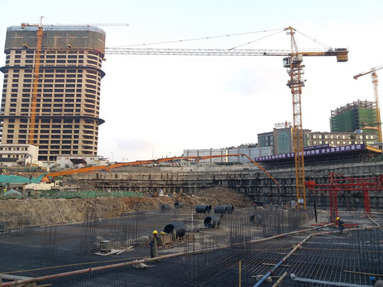 本次筏板施工主要面临三大难点:一是项目周围交通环境复杂,不少路段都属于交通管制区域;二是混凝土技术质量要求高,本次筏板浇筑运用微膨胀纤维混凝土,需要在生产过程中不间断地人工投放0.7公斤/方的纤维;三是原材料需求量大,该项目为筏形基础底板,混凝土总方量为5243方。为此,普吉厂制定专项供应方案并数次组织物流单位召开协调会,就设备配置以及运输路线进行专题讨论,确保供应顺畅;同时,技术科多次与项目方进行沟通,组织试配工作,全程安排技术人员到现场进行技术服务,以保证混凝土的质量和泵送效果。与此除外,普吉厂还组织供应商召开专题会议,要求供应商全力配合,至少提前2天做好备料工作。
