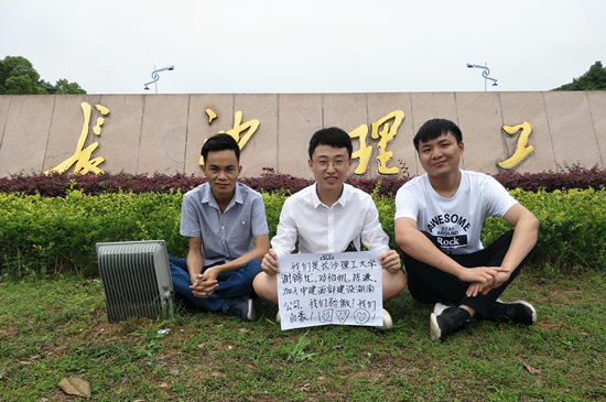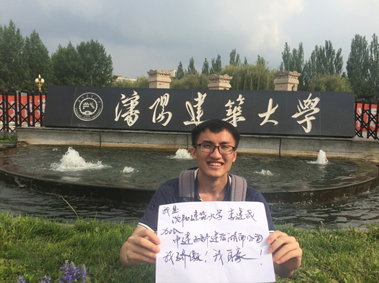 近日,2017届55名应届高校大学生入职中建西部建设湖南有限公司(以下简称湖南公司)。来自四川大学、东北大学、武汉理工大学、长安大学等高校的应届大学生在校门口纷纷举起“加入中建西部建设湖南有限公司,我骄傲,我自豪!”的标语,以各种靓姿展示风采,显示其对未来的憧憬,对职场的期盼,以及加入湖南公司的喜悦。