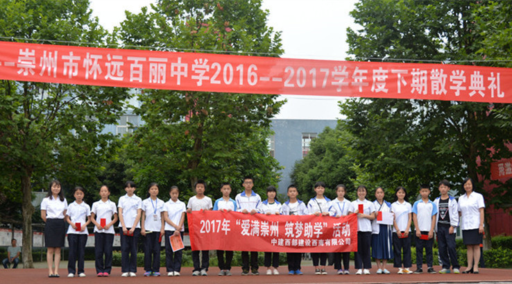 7月4日,中建西部建设西南公司(以下简称“西南公司”)工会领导受邀参加四川省崇州市百丽中学散学典礼,并在典礼上为特优特困学生发放了“筑梦”助学基金。