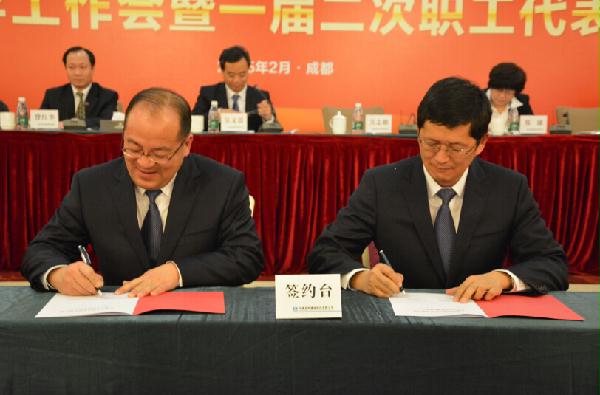 股份公司董事长、党委书记吴文贵与股份公司党委副书记、纪委书记、工会主席曾红华签订集体合同和女职工专项权益集体合同