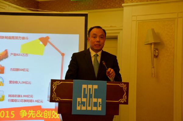 股份公司总经理、党委副书记吴志旗传达中国建筑2015年工作会精神,并作股份公司2015工作报告