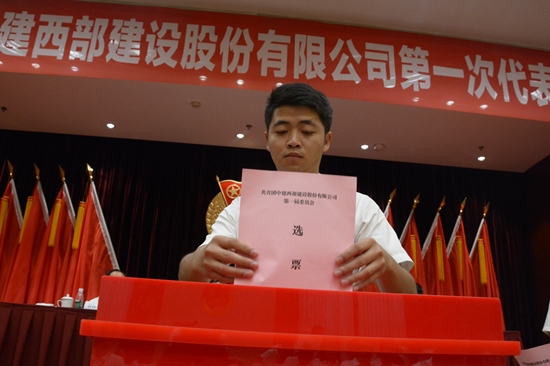 在奏响雄壮的国歌后,大会正式开始。中建西部建设临时团委书记、企业文化部主任、机关党委委员田景伟代表共青团中建西部建设临时委员会作了题为《凝聚青春力量勇担发展重任为实现“两领三最”的“西建梦”而努力奋斗》的工作报告。报告全面总结了公司整合重组以来的共青团工作,也实事求是地指出工作中存在的不足之处,充分分析了新时期公司团青工作面临的形势和任务,并提出了今后一个时期内共青团工作的指导思想,奋斗目标和主要任务,反映了中建西部建设广大团员青年的共同愿望。大会秘书长张荣宣读了大会选举办法,并一致通过了第一届委员会委员候选人名单大会总监票人、监票人及计票人名单。经过大会选举,丁鹏飞、田景伟、李军、李继权、张荣、张施怡、周贤磊、胡凡、韩倜等9人当选为共青团中建西部建设第一届委员会委员。会上,各代表团还汇报了工作报告讨论情况,并一致通过了《关于共青团中建西部建设临时团委工作报告的决议》。