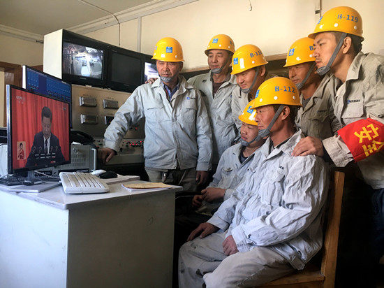 新疆公司中心厂员工在搅拌楼观看十九大开幕会